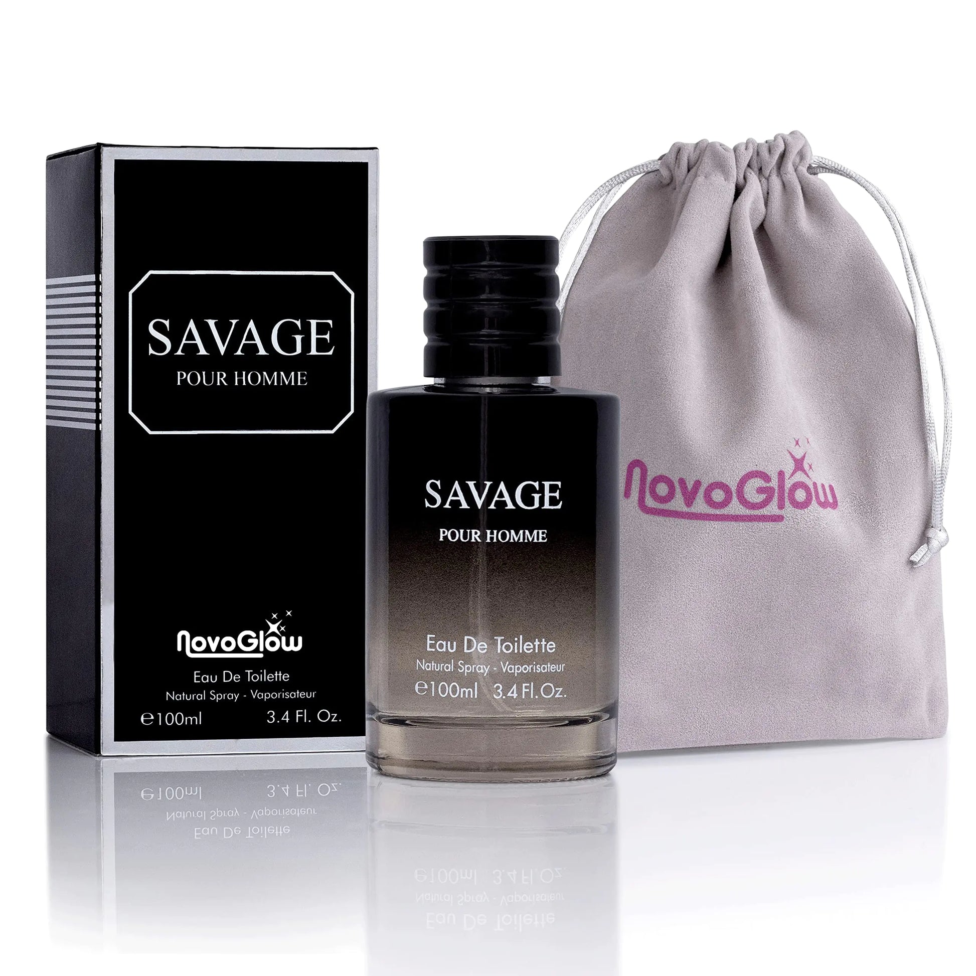 Savage for Men 3.4 Oz Men's Eau De Toilette Spray Refreshing & Warm Masculine Scent for Daily Use Men's Casual Cologne Includes NovoGlow Carrying Pouch Smell Fresh All Day A Gift for Any Occasion